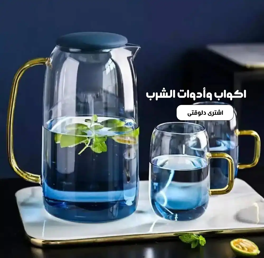 دورق عصير زجاج إيطالي 1.5 لتر بفلتر غطاء ازرق بورجونوفو Borgonovo