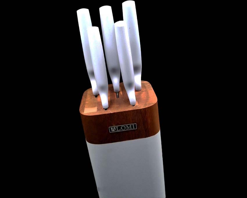 طقم سكينةالوان بالحامل الخشب 6 قطعة