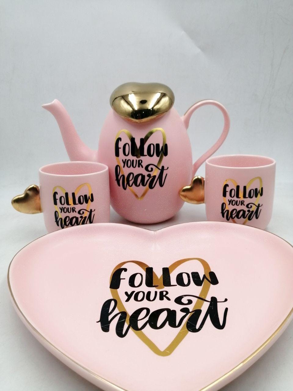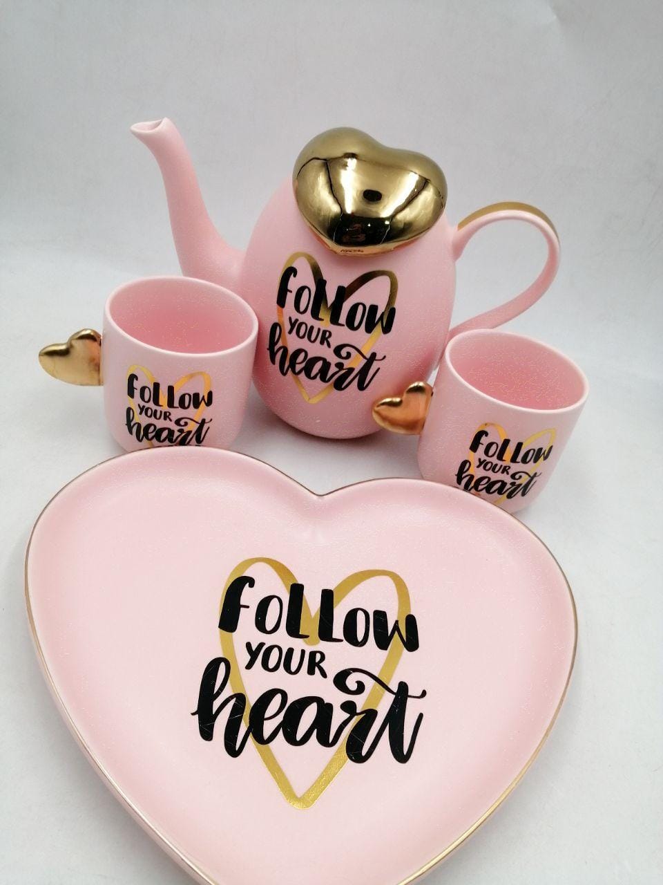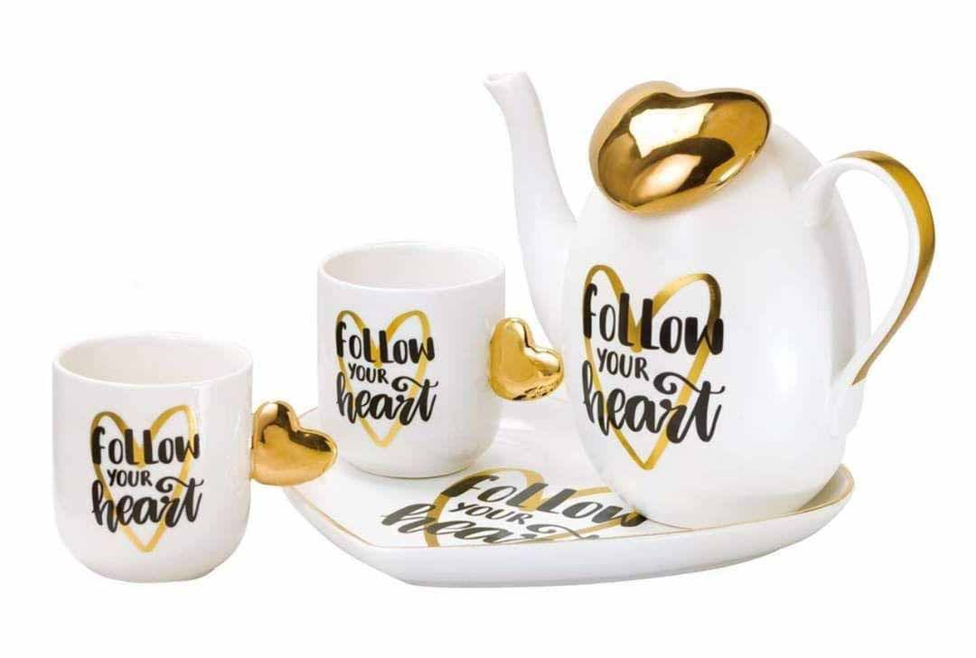 طقم شاى مجات بالبراد والصنية بورسلين قلب