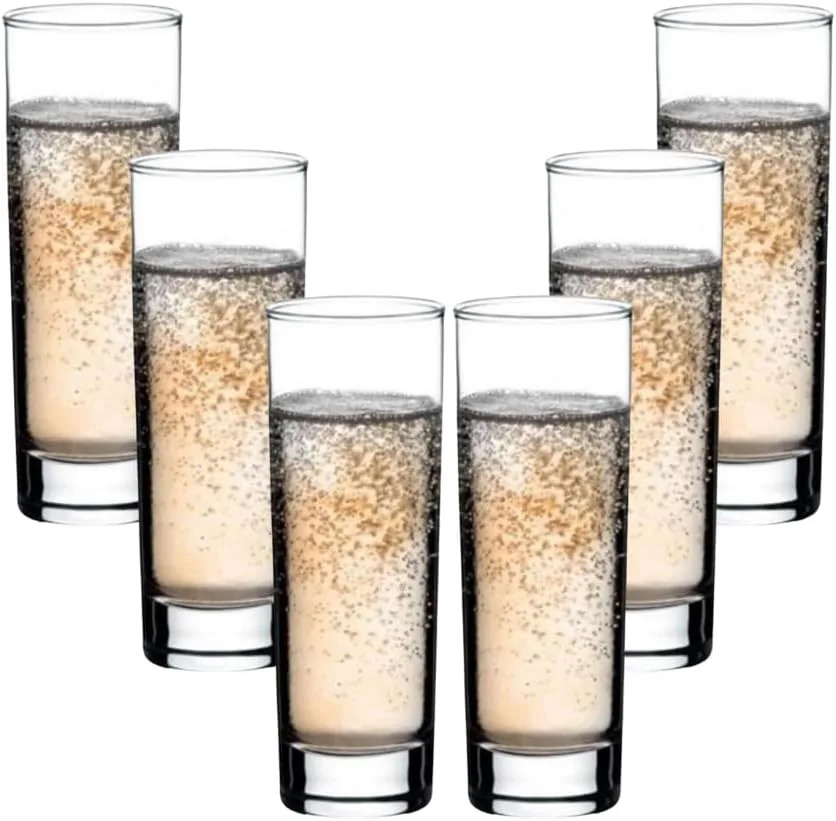 طقم أكواب هاي بول جانبية طويلة من باشابتشي، للمشروبات الباردة والماء، (سعة 290 مل)، 6 زجاج، شفاف من العلامة التجارية: باساباهس